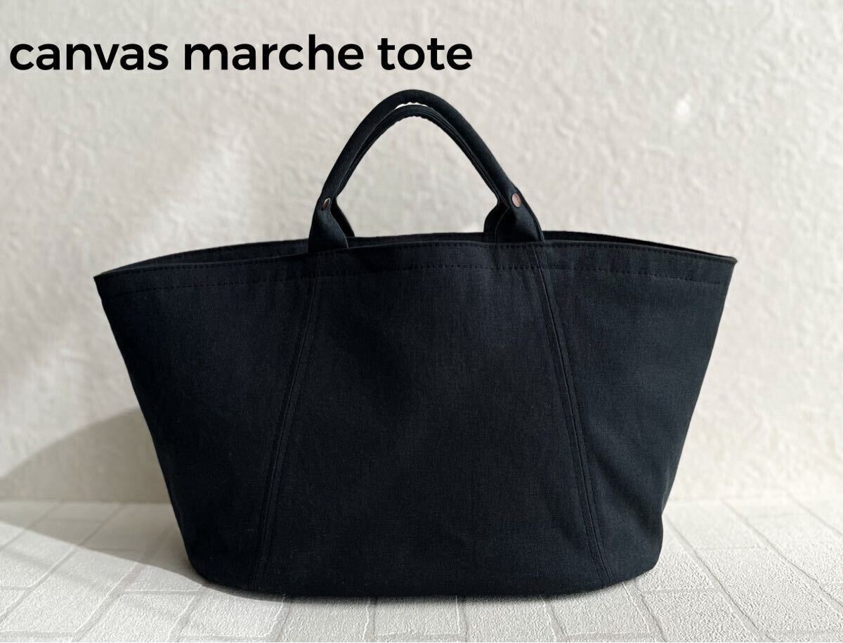 > ●ハンドメイド●ヨコナガ切り替えバケツトートバッグ●ウォッシュドヴィンテージ11号帆布●楕円底●マルシェバッグ●A4●キャンバス●墨黒