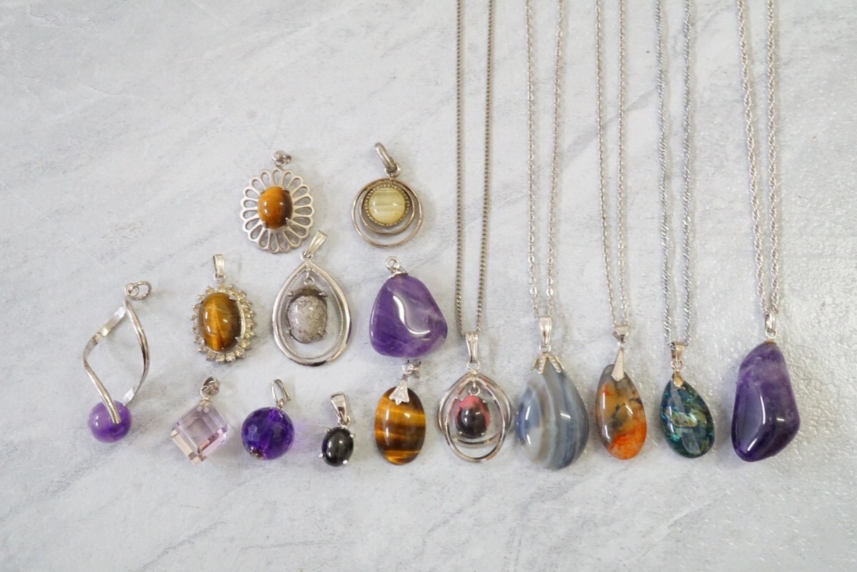 - C787 全て天然石 カラーストーン ネックレス ペンダント 15点セット ヴィンテージ アクセサリー 大量 まとめて おまとめ まとめ売り
