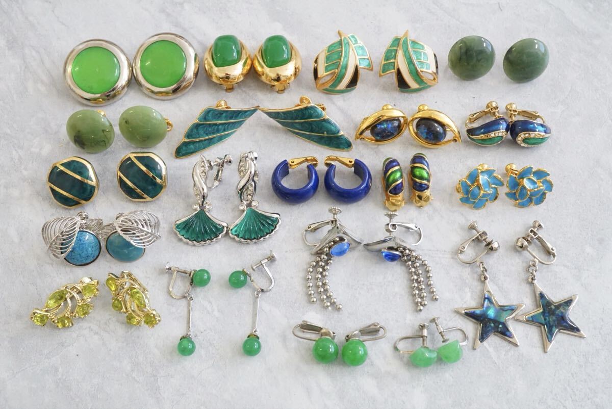 - C749 青/緑色系 海外製など ヴィンテージ イヤリング 20点 アクセサリー 両耳揃い アンティーク 大量 まとめて おまとめ まとめ売り