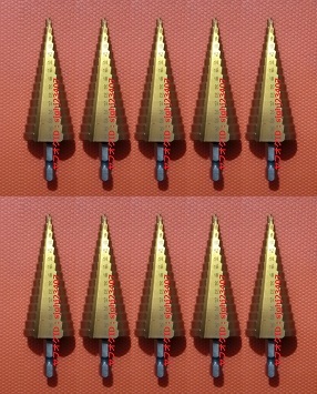 ・刃の表面をゴールドチタンコート加工することにより、耐久性と切削力を向上したステップドリルです。