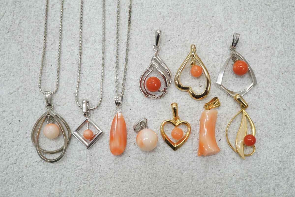 - B1097 赤珊瑚 本珊瑚 ネックレス ペンダント 10点セット ヴィンテージ アクセサリー 大量 まとめて おまとめ まとめ売り コーラル サンゴ