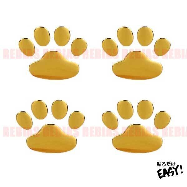 > 送料無料 激カワ 肉球 ステッカー 【ゴールド】 4個セット ペット シール 3D 立体 簡単イメチェン カスタム カーステッカー 車 汎用 動物