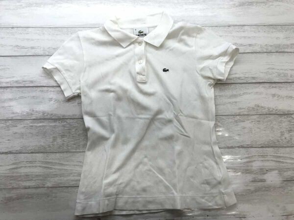 - ラコステ LACOSTE アメトラ スポーツ 鹿の子 ワンポイントロゴワッペン 半袖ポロシャツ 日本製 レディース コットン混合 38 白