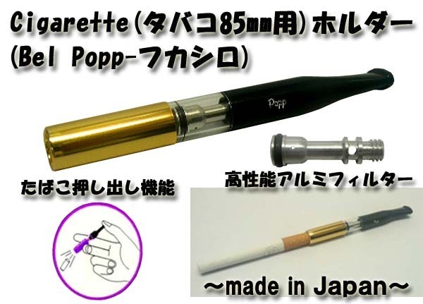 《< 新品 日本製 フカシロ 特殊アルミフィルター内蔵 タバコ用ホルダー(85mm 直径0,75cmタバコ用) Bel Popp 全長(8,5cm) 押し出し型(ゴールド) >》