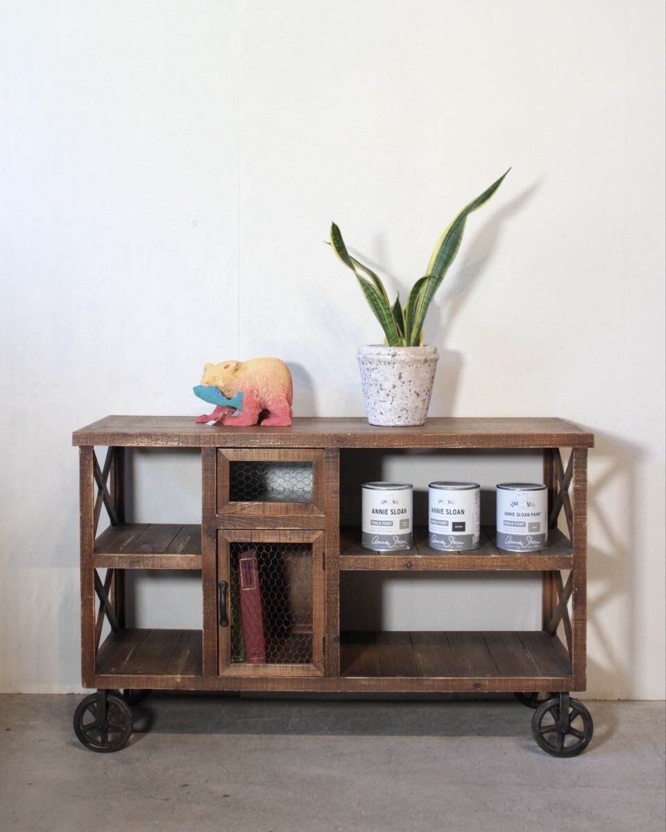 > 古木風 大きなシェルフ 飾り棚 カフェ 什器 インダストリアル キャスター付き 車輪付き 本棚 収納 アメリカンヴィンテージ調 カフェ 15385