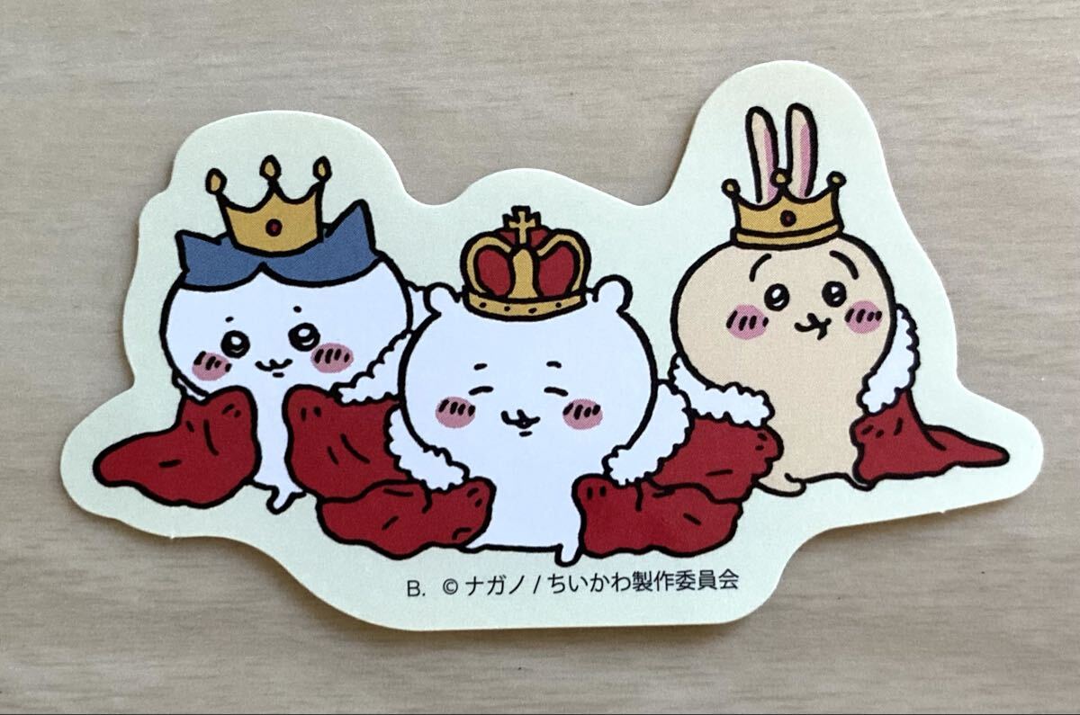 - 【ちいかわ〜ダイカットステッカー2、ちいかわ、ハチワレ、うさぎ、王冠】2022.10、レア!ナガノ、ちいかわ