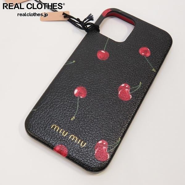 > (2)miumiu/ミュウミュウ MADRAS CILIEGIE/マドラス チェリー レザー iPhone12/12Pro 5ZH129 スマホケース ブラック /000