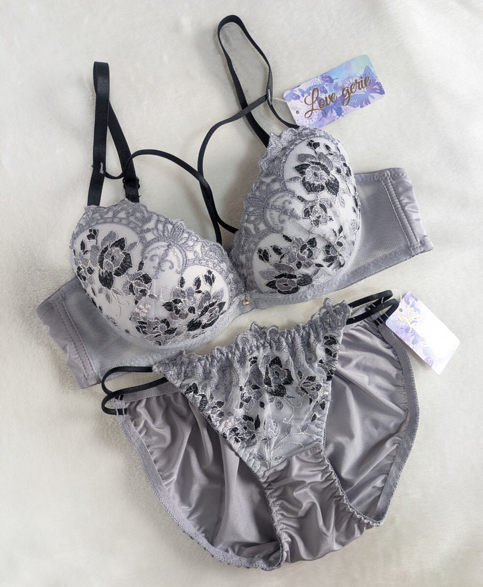 > お泊まりに☆C75ブラ&パンティ☆上下お揃い☆未使用☆セクシー胸元クロスストラップ&サイドストリング☆グレー☆匿名配送可☆タグあり☆