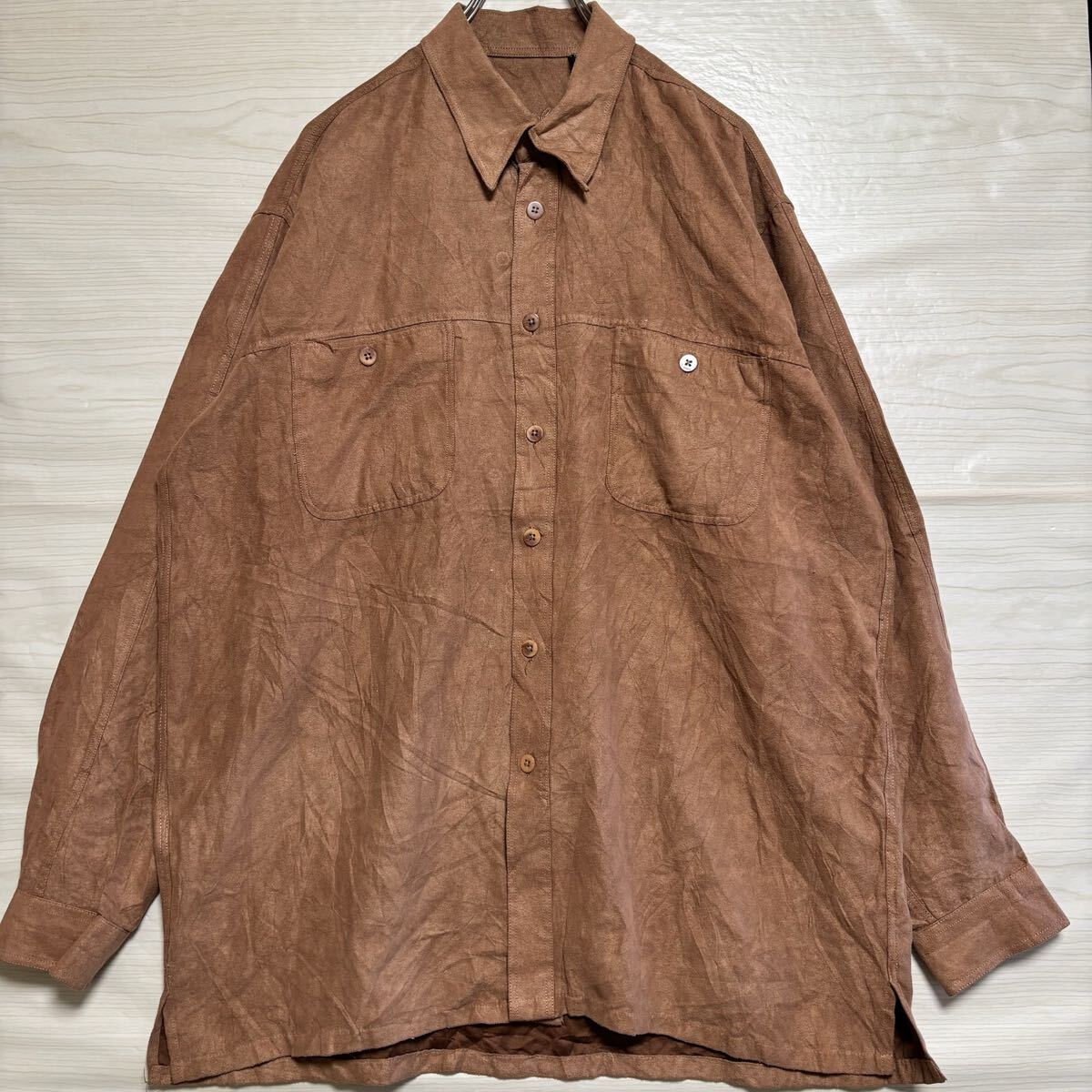 > VINTAGE ヴィンテージ 長袖シャツ レギュラーカラー 胸ポケット サイズL ブラウン 茶色 ポリノジック メンズ トップス(39)