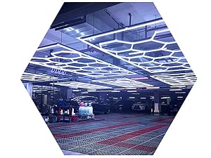 - Kurflo 六角形ガレージラ イト 14個六角形ライト ハニカムライ ト 672W ガレージ六角形ライ ト 高輝度 DIYセット 洗車室用 天井用 ジム用 (