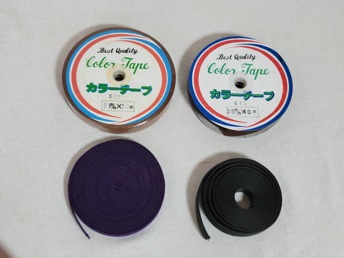 - 編み込みバンド 布テープ カラーテープ 幅25ミリ3巻き 幅13ミリ1巻き 全4巻き 未使用品&使い残り品