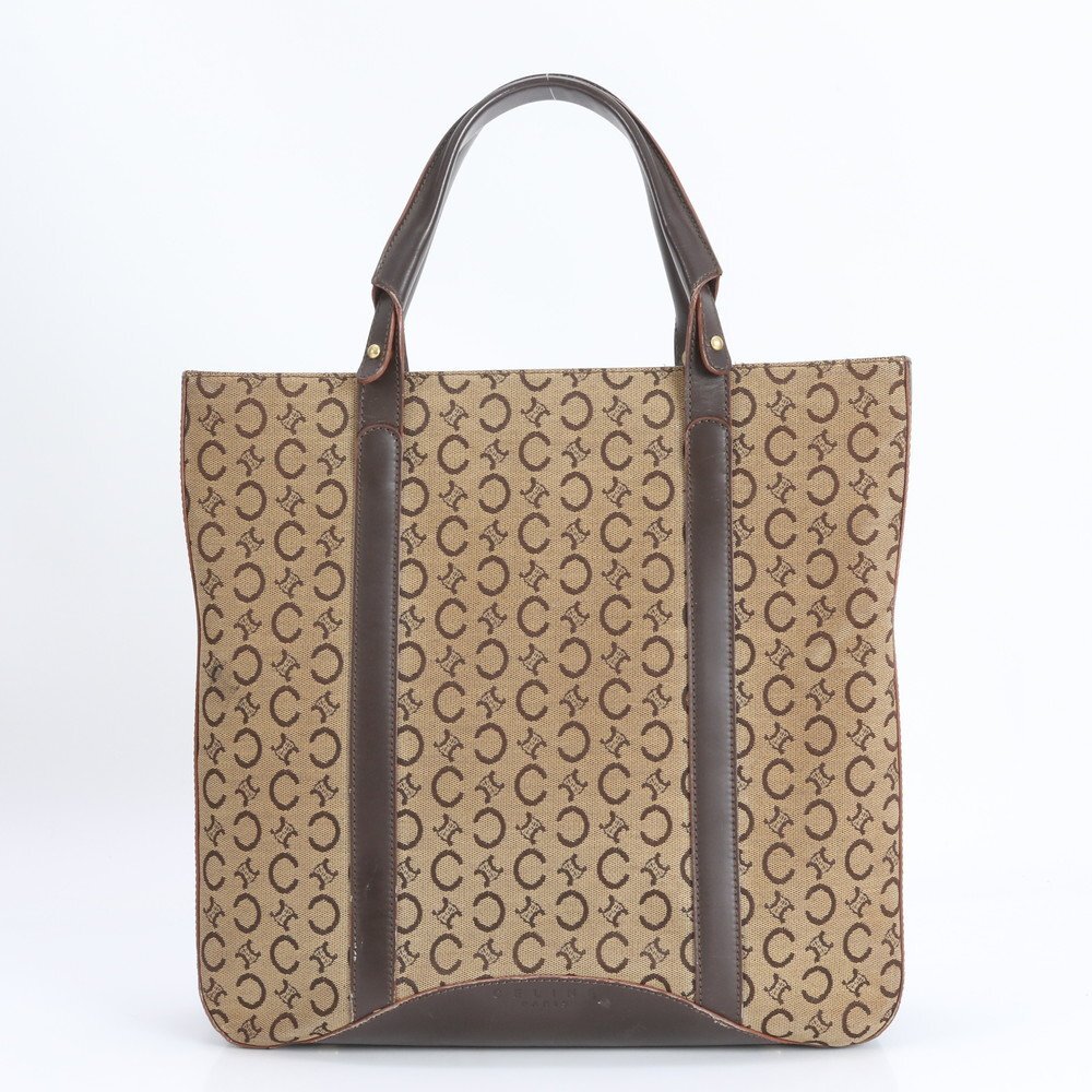 > 1円■美品■セリーヌ■Cマカダム レザー トート バッグ 肩掛け ショルダー ハンド A4 ブラウン 茶色 ブランド レディース EEE CR19-1