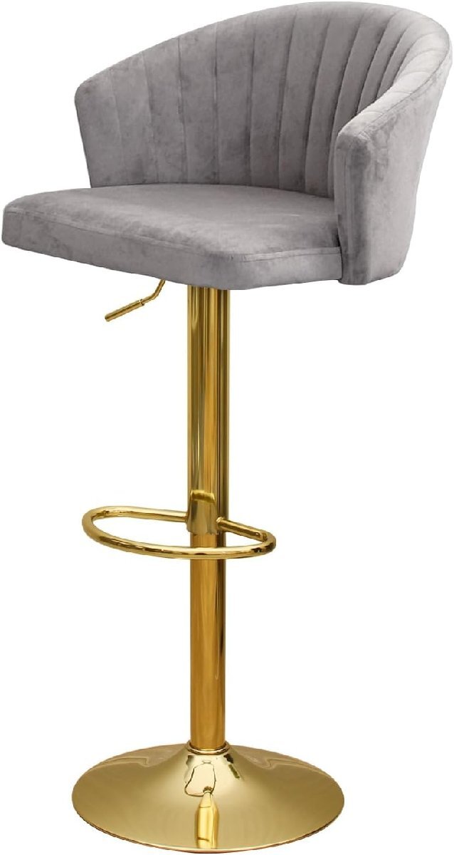 > 【中古/昇降確認済】241024002 昇降式カウンターチェアー FK-785 グレー ゴールド脚 1脚 バーチェア 組立式 ベロア おしゃれ 金脚 豪華
