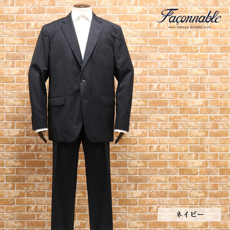 - 1円/秋冬/Faconnable/50サイズ/スーツ 美艶ウール100%サージ シンプル 無地 定番 ビジネス 新品/紺/ネイビー/me173/