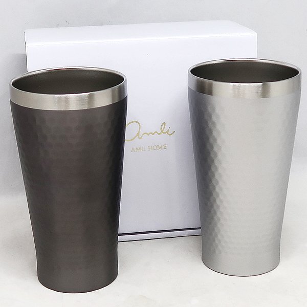 > DKG★送料無料 未使用 AMIi HOME サーモタンブラー 保温保冷 真空二重構造 タンブラー 2個 真空タンブラー ペアタンブラー シルバー グレー