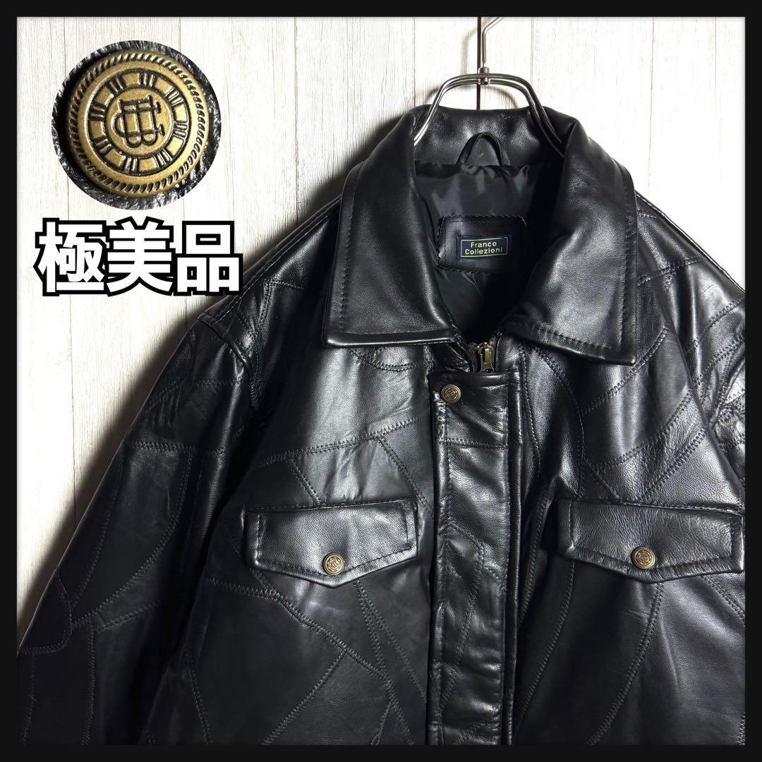 - 【未使用級・極美品】90s ヴィンテージ クレイジーパターン パッチワーク ラムレザーコート ブラック 黒 M 実寸大きめ
