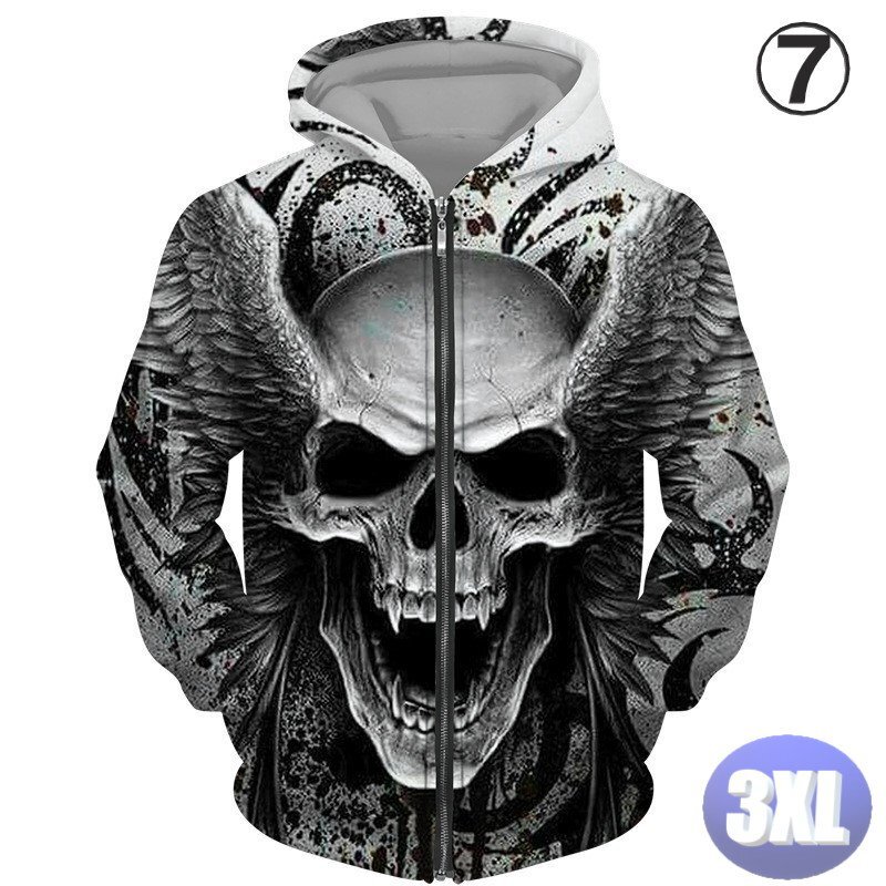 - フード付き ドクロパーカー ジップアップ カラー7 3XL トレーナー アウター 防寒 n717
