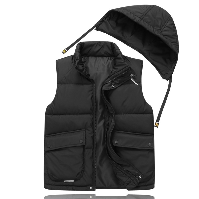- 防寒 中綿ベスト ベスト 袖なしジャケット アウター フード 新品・メンズ キャンプ トップス カジュアル【8002】黒 3XL