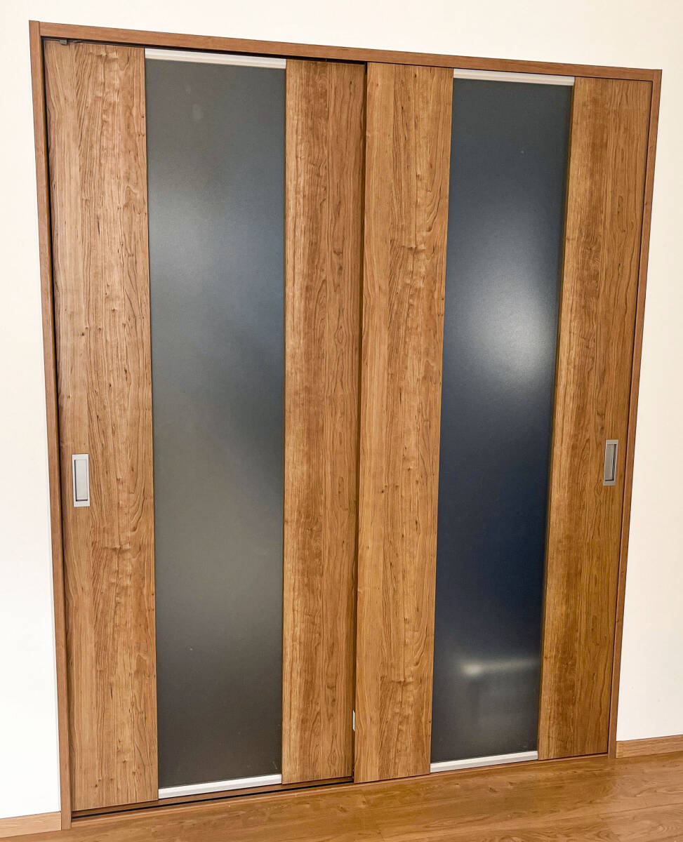 - 【美品】Panasonic 2枚引き違いスライドドア/木目調・採光ガラス入り/幅約800mm×高さ約2000mm/枠なし/アート家財便発送可