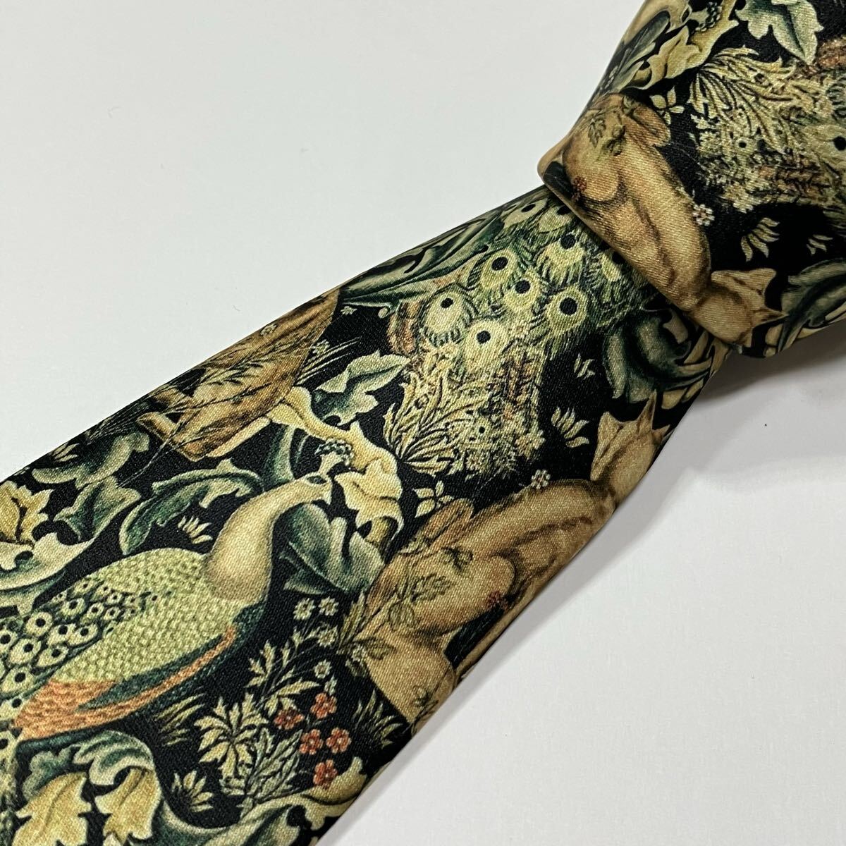 - アニマル ボタニカル ポリ ネクタイ 古着 ブラック カーキ ブラウン レッド 639-3