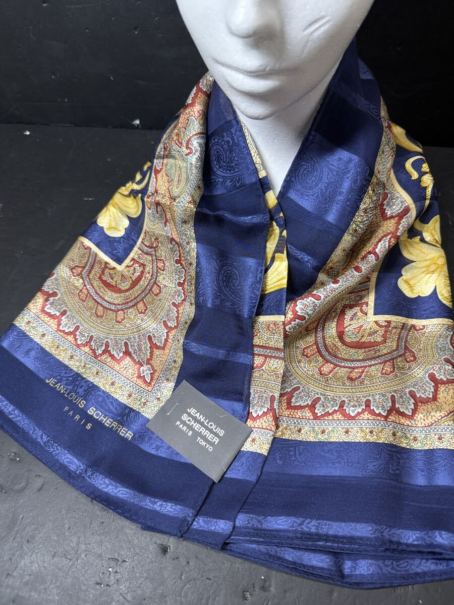 > ★格安出品 未使用品 シルク100% 絹 スカーフ JEAN-LOUIS SCHERRER PARIS ネイビー系 おしゃれ お洒落 レディース 女性 コレクション Se88