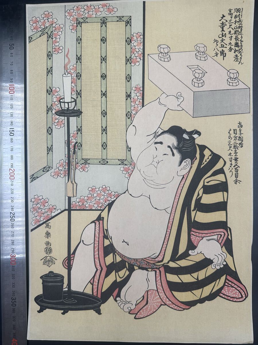> 【真作】相撲!大正期 浮世絵木版画 東洲斎写楽「大童山将棋盤をささげる図」 役者絵 大判 錦絵 保存良い