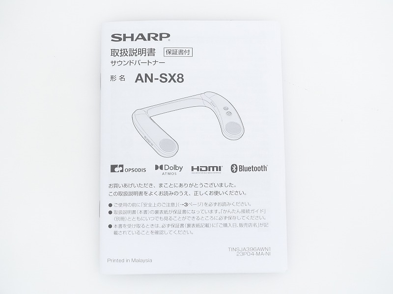 - ■□SHARP AN-SX8/AN-WD4 Bluetooth搭載 サウンドパートナー ウェアラブルネックスピーカー シャープ 元箱付□■032063002m□■