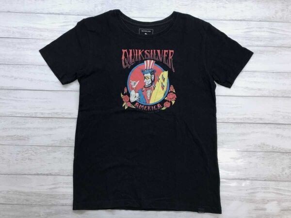 - クイックシルバー QUIKSILVER レトロ ヒッピー アメリカン サーフ ライダー 星条旗モチーフ 半袖Tシャツ キッズサイズ コットン100% 160 黒