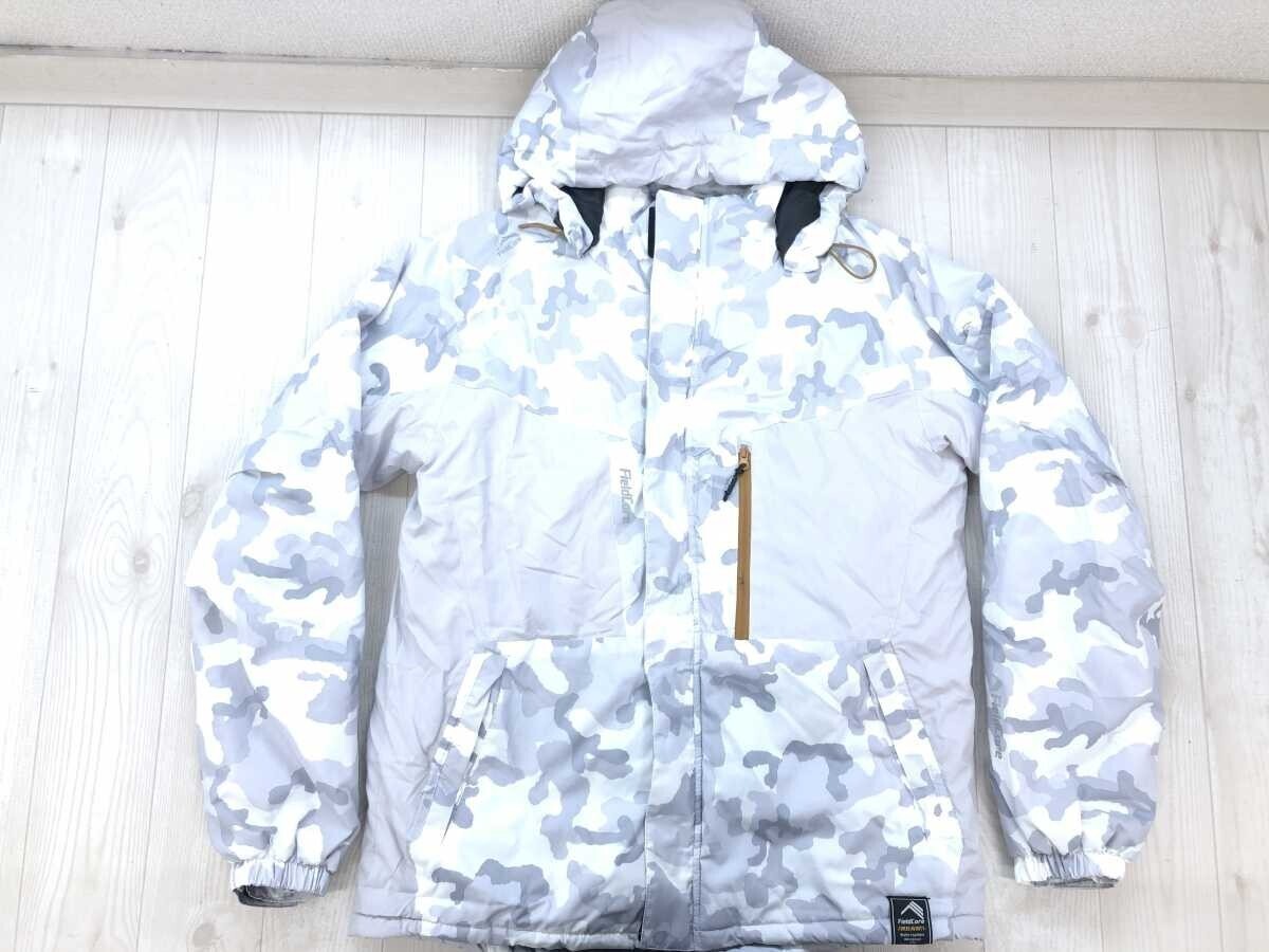 - フィールドコア Field Core ワークマン スポーツ アウトドア 迷彩カモフラ 裏地フリース 中綿ジャケット メンズ リップストップ L グレー白