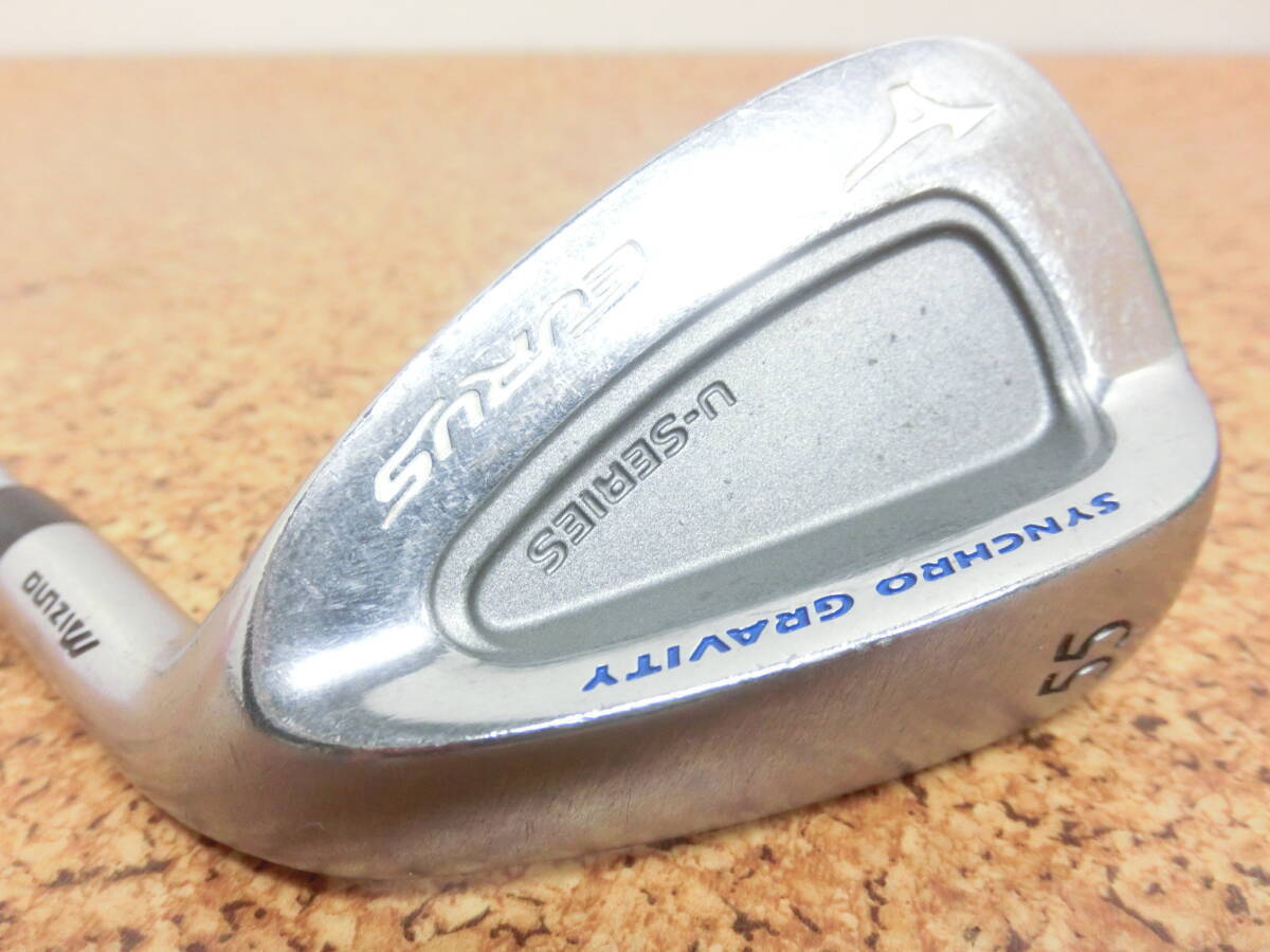 - 訳有品 激安出品♪MIZUNO ミズノ EURUS U-SERIES SYNCHRO GRAVITY ユーラス ウェッジ 55° 純正スチールシャフト FLEX-? 中古品♪F2835