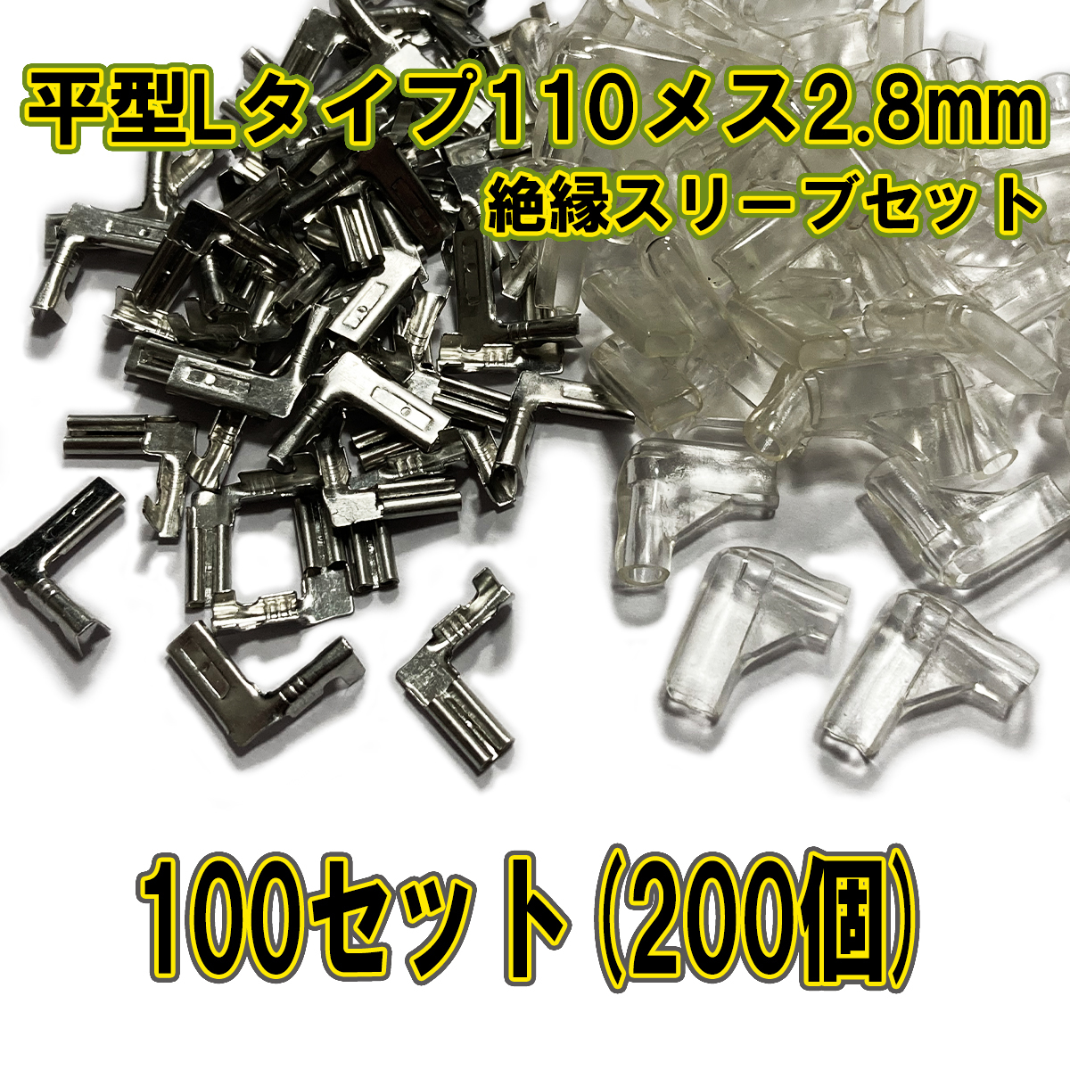 > ファストン端子 平型 110型 L型 2.8mm メス、絶縁スリーブ 100セット(200個)【オーディオ、バイク、アケコン、アーケードコントローラー】