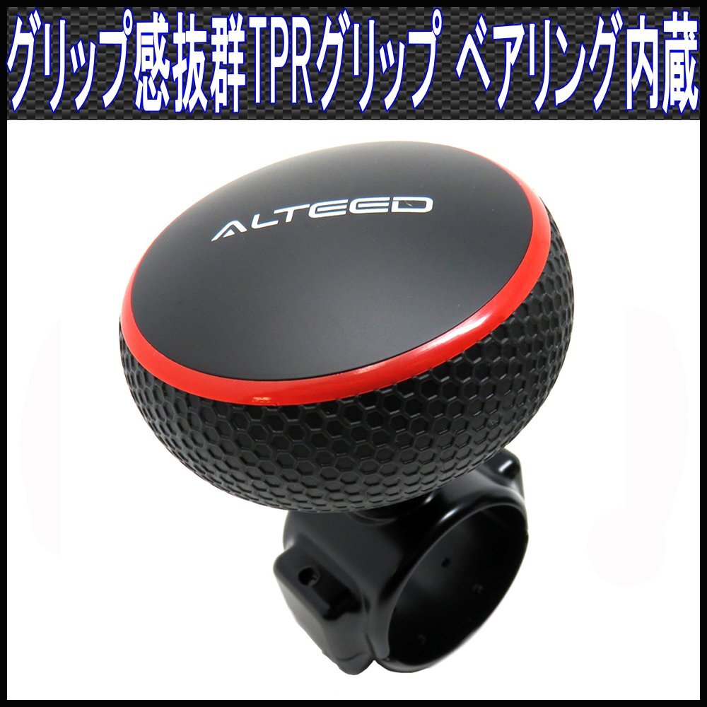 > ステアリングスピンナー 黒×赤ライン ハンドルスピンナー ベアリング内蔵 TPR素材採用グリップ感良い厚め湾曲デザイン[ALTEED]
