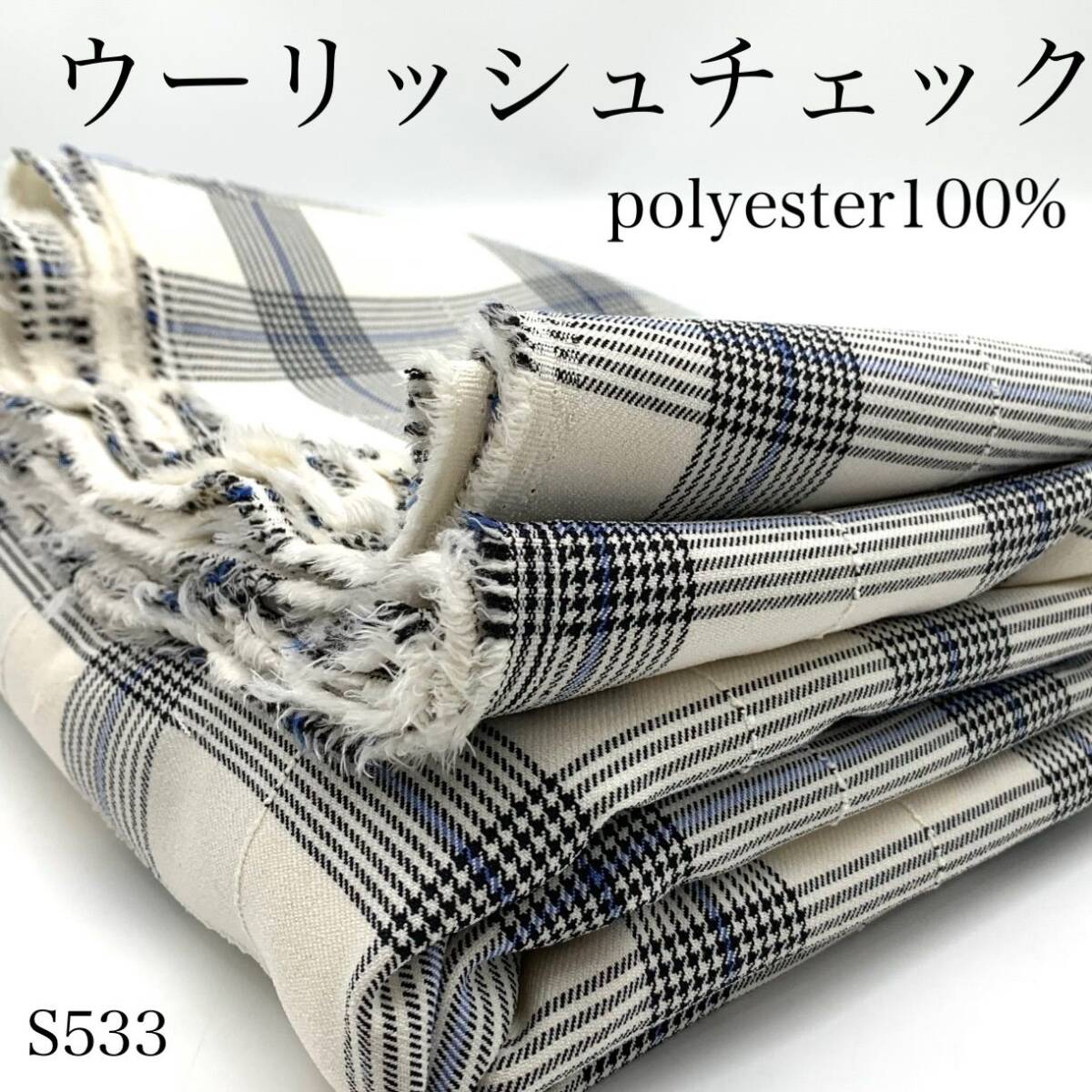 > S533 ウーリッシュチェック 5m ポリエステル100% オフホワイト系 チェック柄 格子柄 生地 ハンドメイド
