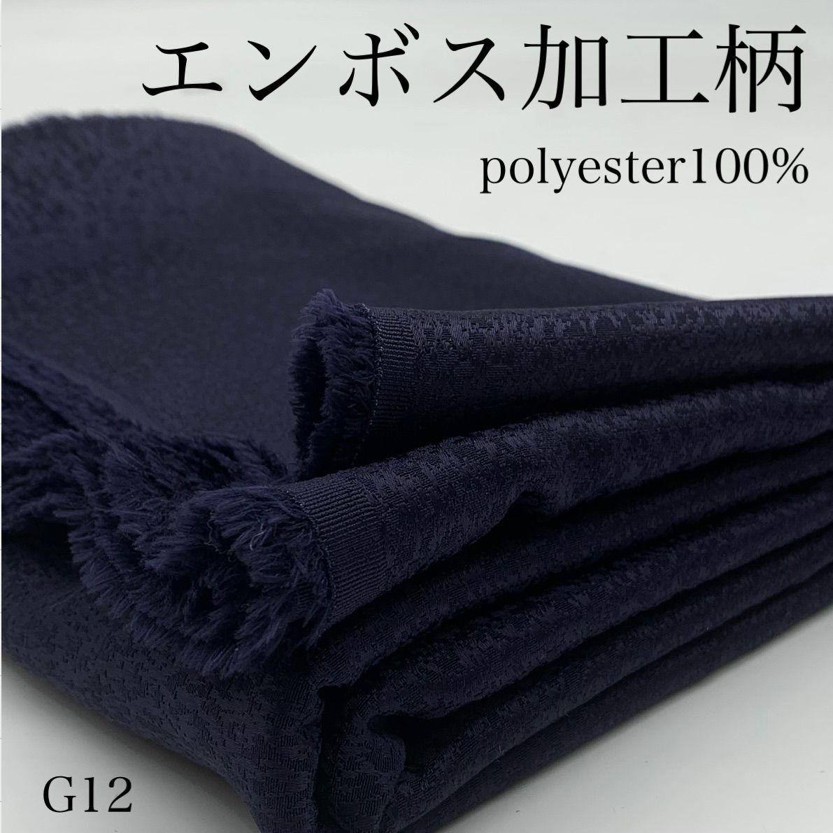 > G12 エンボス加工柄 5m ネイビー ポリエステル100% ドレープ感 日本製 生地 ハンドメイド はぎれ 布 ブラウス スカート