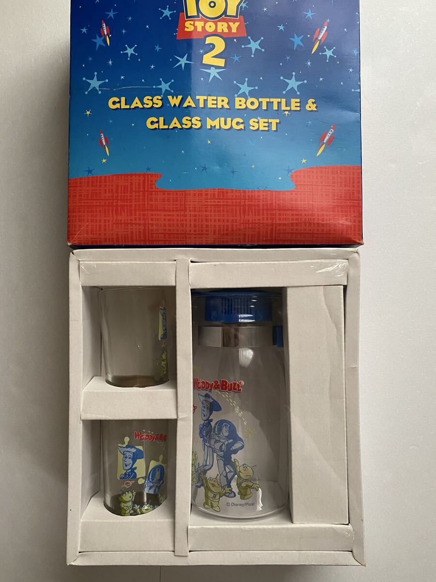 - 新品未開封◆ディズニー&ピクサー トイ・ストーリー2 グラスウォーターボトル&グラスマグセット 当時物 コップ