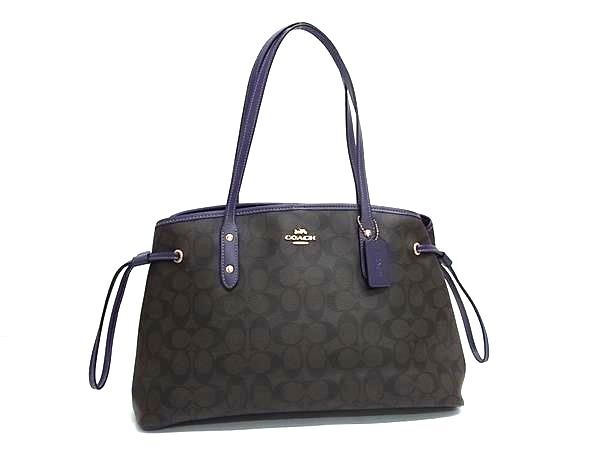 > 1円 ■新品同様■ COACH コーチ F57842 シグネチャー PVC ハンドバッグ トート ショルダー レディース ブラウン系×パープル系 BQ1987