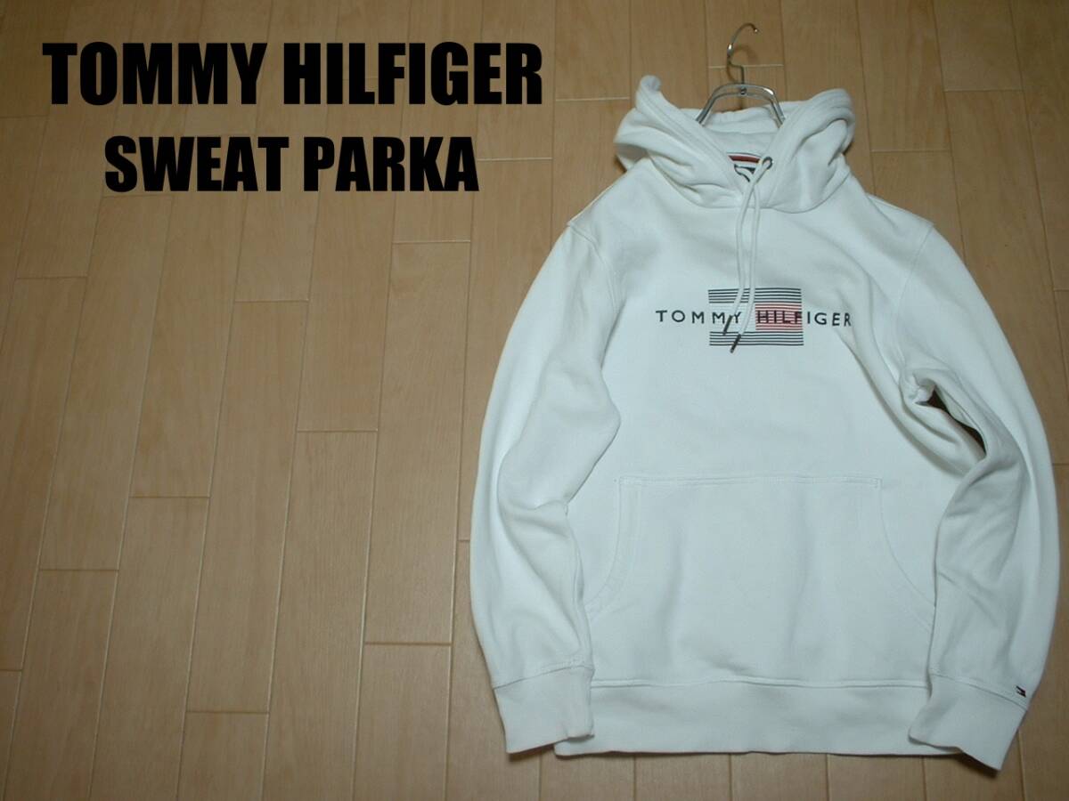 > TOMMY HILFIGERビッグロゴ刺繍スウェットパーカーMレディース白ホワイト正規トミーヒルフィガーFLAGフラッグフーディトレーナー