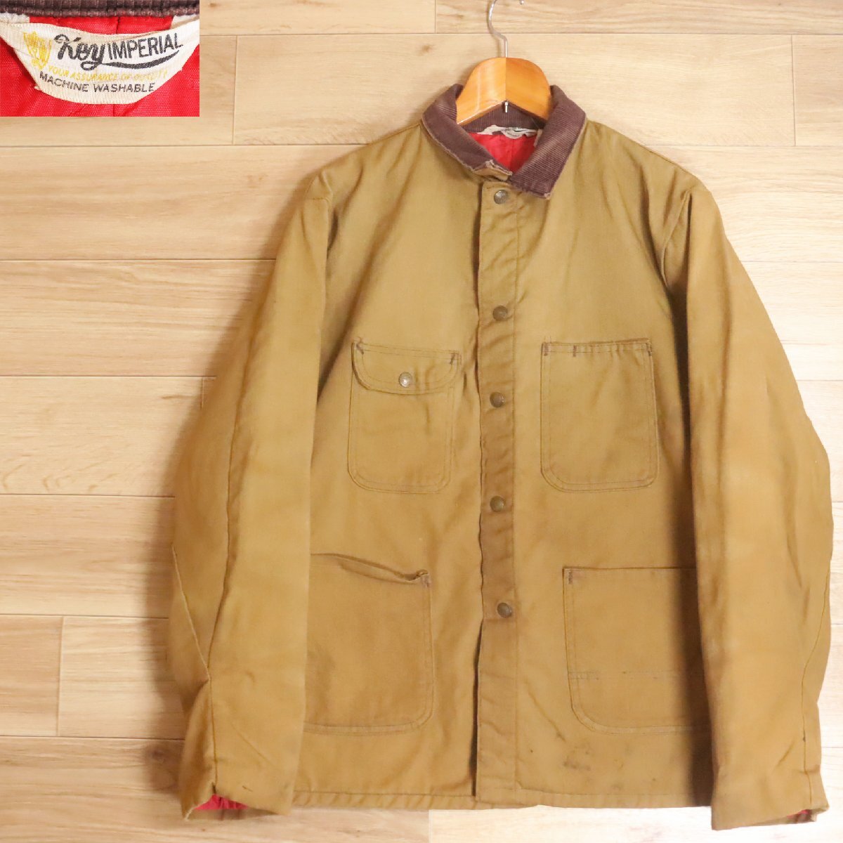 - @1R/R6.12-8 70s ヴィンテージ Key IMPERIAL カバーオール 襟コーデュロイ ワークジャケット ブルゾン 裏キルティング 42