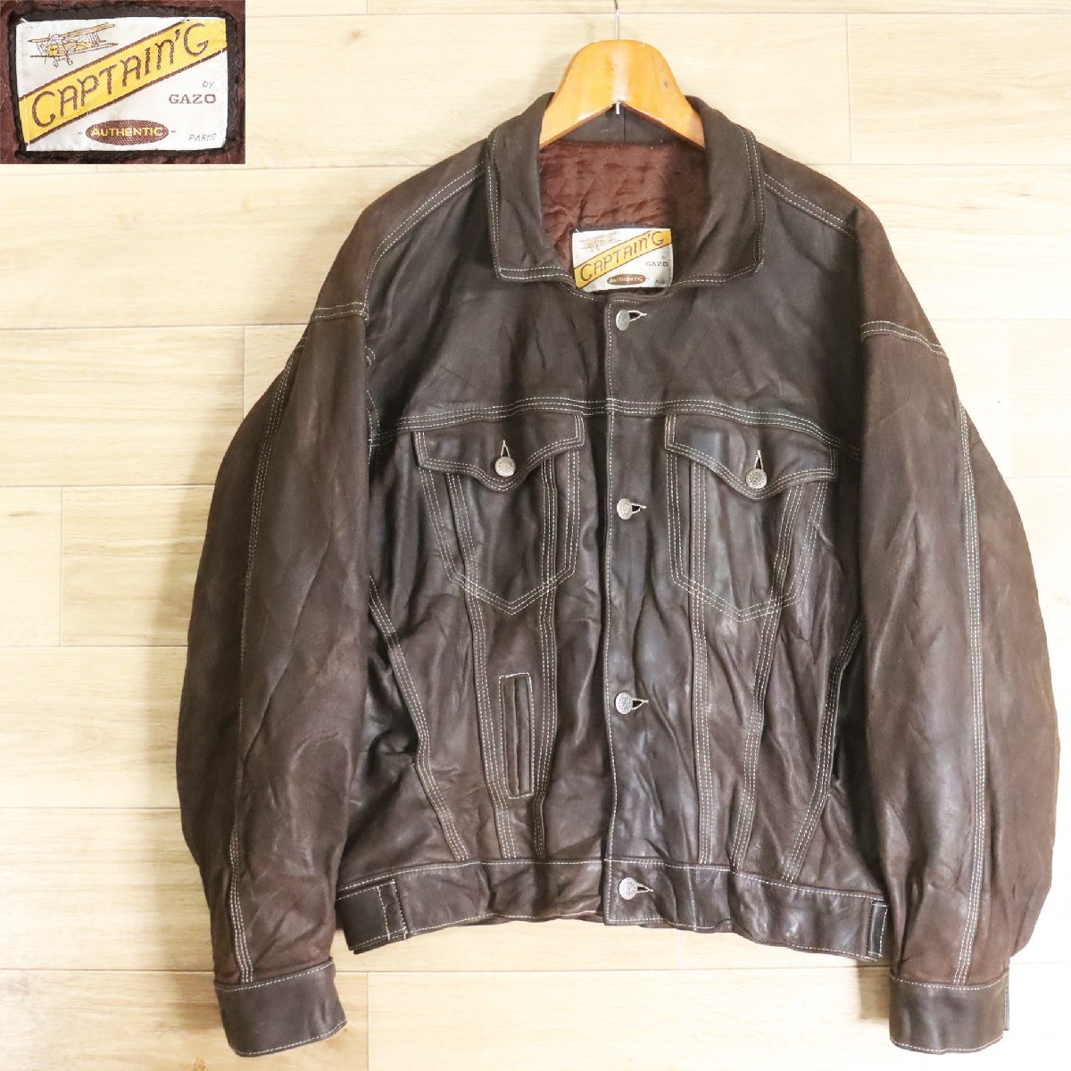 - M5R/Y6.4-2 ユーロ古着 CAPTAIN'G by GAZO トラッカージャケット 本革 レザージャケット 革ジャン 皮ジャン メンズ アウター