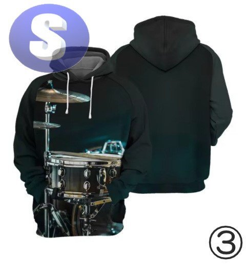 - フード付き 楽器パーカー ドラム S トレーナー アウター 防寒 n724-3
