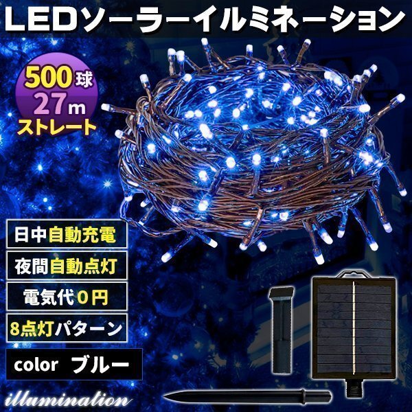 - ソーラー イルミネーション 屋外 クリスマス ストレート 屋外用 イルミネーションライト 500球 ブルー