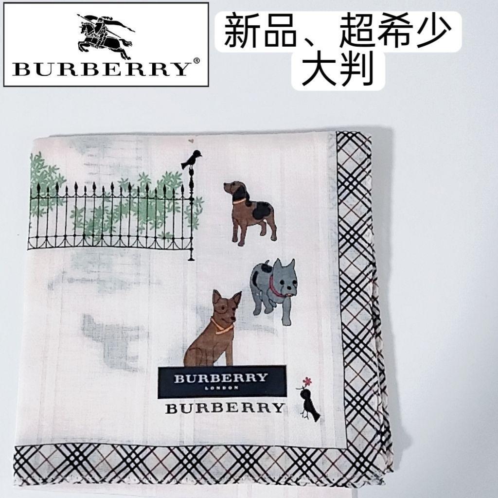 - 【新品超希少】 バーバリー 大判ハンカチ/スカーフ ピンク ノバチェック柄 犬柄