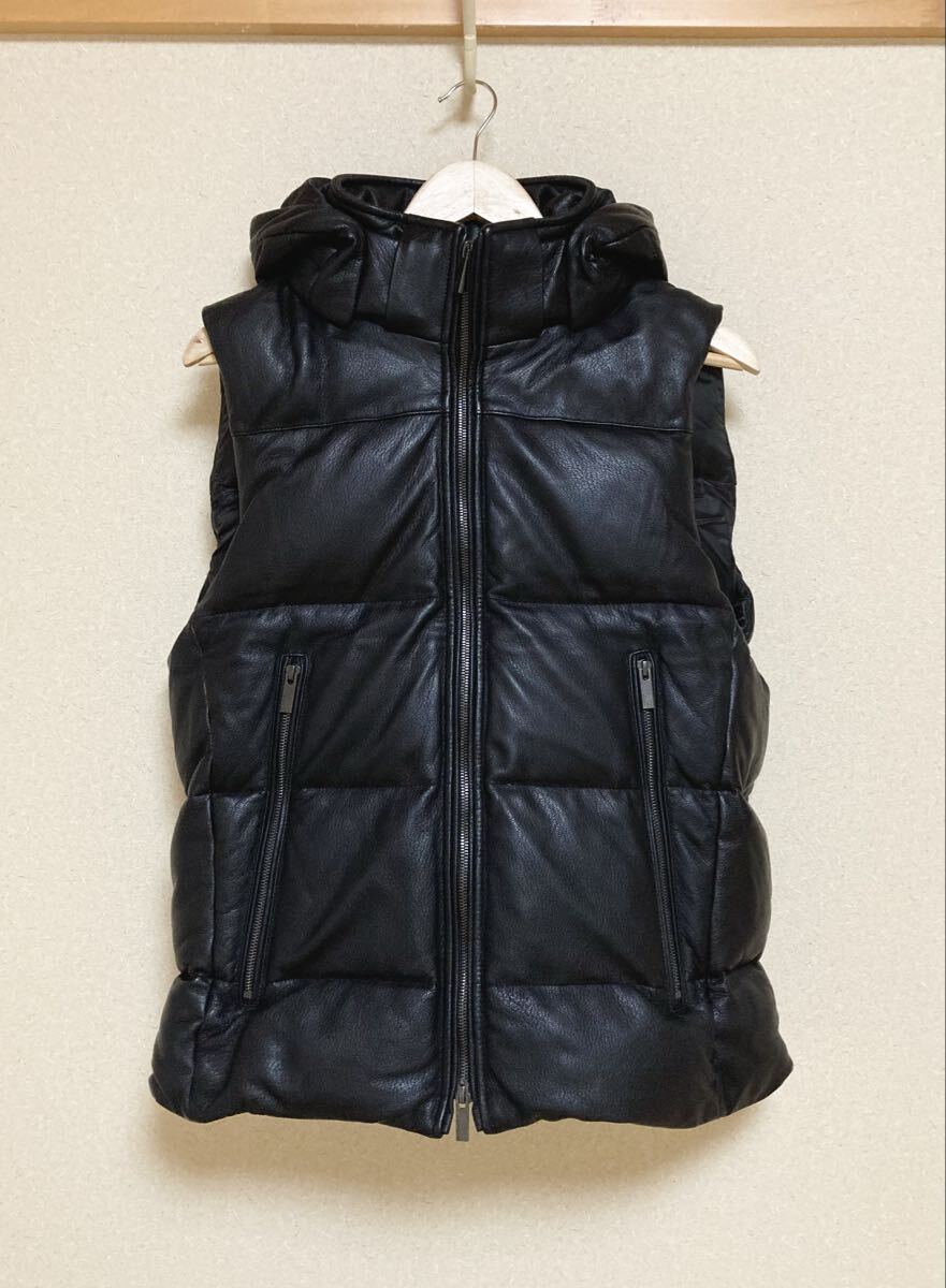 - 美品☆[JOSEPH HOMME] 23AW 定価198,000 ライトゴートシュリンク シボ革 レザーダウンベスト 48 山羊革 LWJHCA0104 ブラック ジョセフ オム