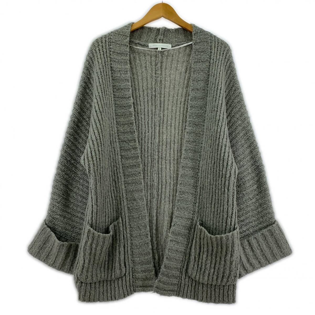 > MERCURYDUO マーキュリーデュオ ボタンレス リブニット カーディガン sizeF/グレー
