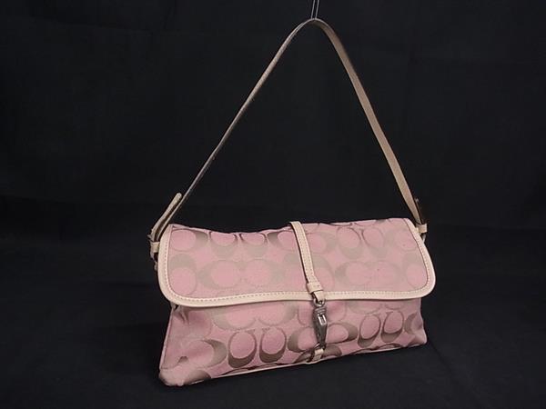 > 1円 COACH コーチ 6348 シグネチャー キャンバス×レザー ワンショルダーバッグ ハンドバッグ 肩掛け ピンク系×ベージュ系 FP7975