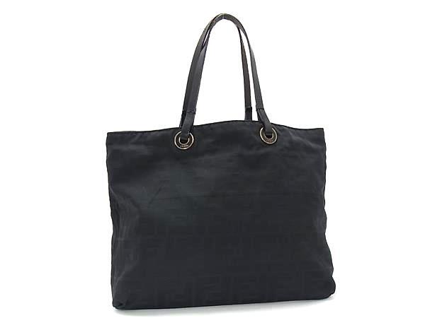 - 1円 FENDI フェンディ ズッカ柄 ナイロン×レザー ハンドバッグ トートバッグ レディース ブラック系 FU5024