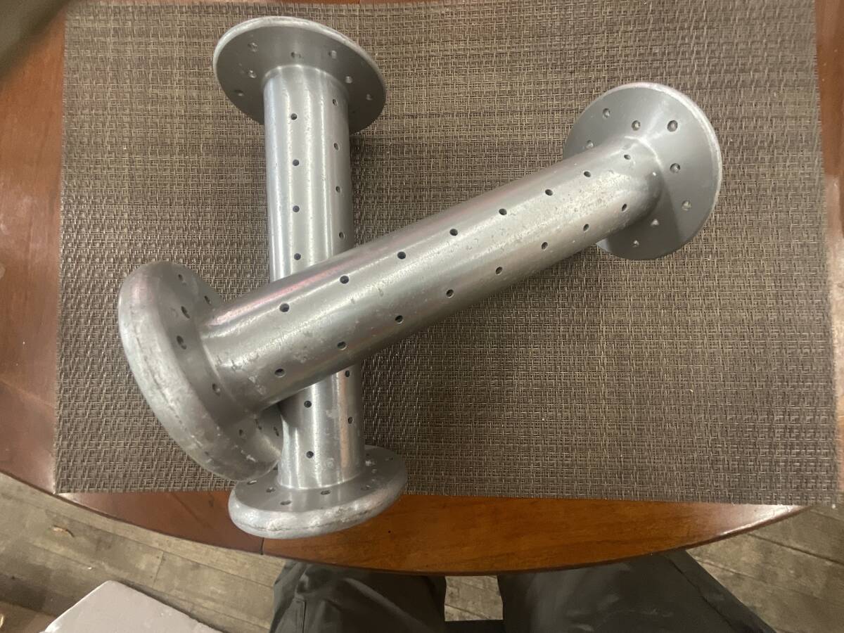 - 2個 セット 古道具 多分 アルミ製 ? 大きい スプール 糸巻き 巻き芯 アンティーク 希少 インテリア 雑貨 木製 スプールも出品中!
