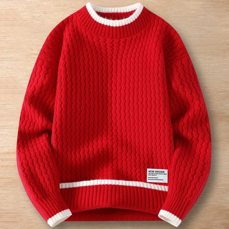 - Y094-M レッド 新品DCKMANY ウール混 リブ編み ニットセーター 配色 トップス 厚手 暖かい 秋冬 メンズ プルオーバー ラウンドネック