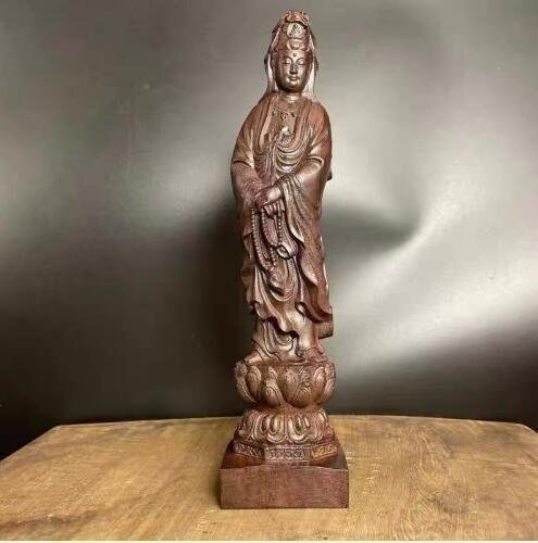 - 新品★仏教美術 仏像 沈香木彫り 観音菩薩 観音立像 置物 精密彫刻 高29cm