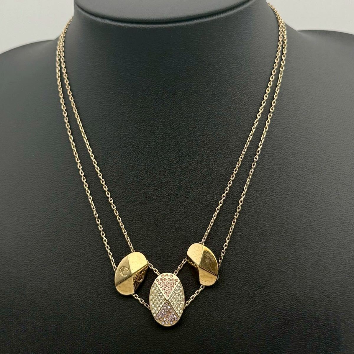 > 【希少・極美品】Christian Dior クリスチャンディオール ネックレス チョーカー ペンダント CD ゴールド ラインストーン 3連 ダイカット
